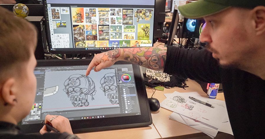Creativity meets technology. Students begin with drawing fundamentals, visual composition, and colour theory, while learning the basics of gameplay design and prototyping.